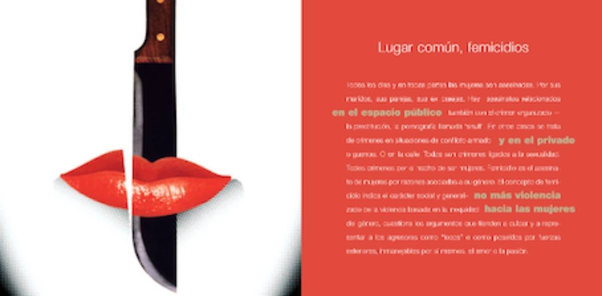 El mensaje publicitario, por el contrario, generalmente se publica en revistas acordes con el estatus comercial de las personas (un lápiz labial costoso en la revista Vogue, por ejemplo). En el caso de mensajes dirigidos a mujeres del campo o los suburbios y que necesitan orientación sexual, la ilustración, el color y la síntesis de textos (si es que pueden evitarse para aquellas con alfabetización precaria) se vuelven recursos esenciales si se quiere llegar a todos, sin exclusiones, ampliando la universalidad. La alusión a recursos gráficos que ya se han usado y se han instalado en el inconsciente colectivo puede acentuar una intención. En el caso de la obra de Luchetto, la tipografía de «Ni una muerte más» (de una mujer) es intencionalmente similar a la del lema «Nunca más», usada tras la dictadura. El recurso enriquece y revincula con un anclaje válido para el fin. La intencionalidad es el motor principal de toda propuesta de afiche social. El impacto de la forma y el color (un gran círculo rojo para representar sangre, por ejemplo) y las tipografías de trazo grueso pueden colaborar si la intención mencionada es clara. Sin esa claridad de la intención, el potencial de la propuesta se debilita.
